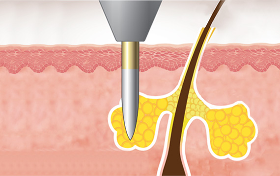 고민 부위에 니들을 삽입하여 피지선 부위를 타겟팅합니다.