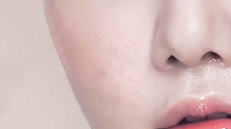손상을 받은 피부에 발생하며 모양은 원발성과 동일합니다. 비립종은 수개에서 수십 개까지 다양하게 나타나는데, 1~4mm 정도 크기의 흰색