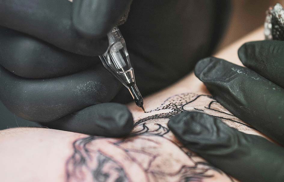 피부, 피하조직에 상처를 내고 잉크를 상처 안에 넣어