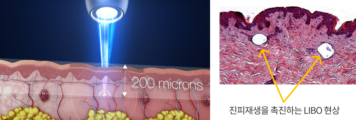 10조 분의 1초 동안 일정하게 발사되어 레이저는 콜라겐 재생을 유도하여