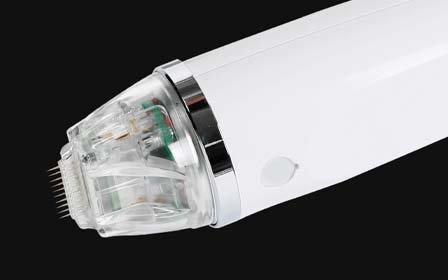 마이크로 니들을 피부에 밀착 시켜 고주파를 피부에 직접 전달합니다.