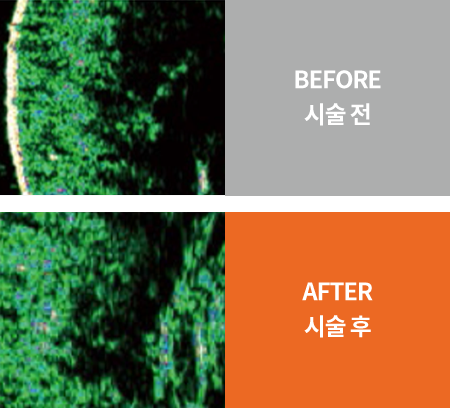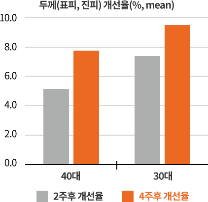 피부 세포 속부터 재생되어 피부 진피의 치밀도 및 두께가 증가하여 잔주름 개선 및 탄력 증진 효과를 얻을 수 있습니다.