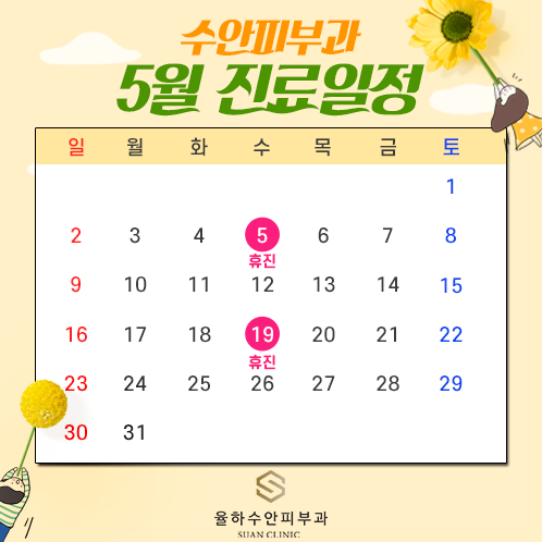 수안피부과 5월 진료일정입니다ㅎㅎ