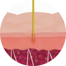 마이크로 니들을 피부에 밀착 시켜 고주파를 피부에 직접 전달합니다.