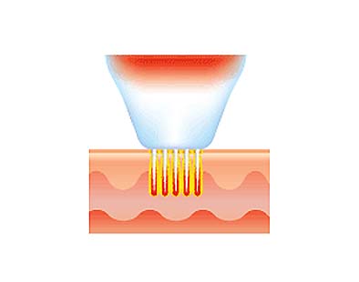 고주파 레이저를 직접 전달해 흉터를 제거하고 모공을 축소시킵니다.